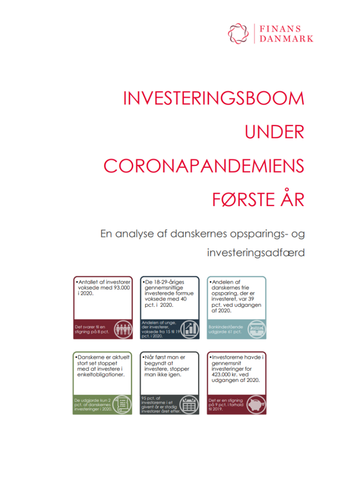 Finans Danmark ønsker at være med til at styrke investorkulturen i Danmark og udgiver løbende undersøgelser af, hvordan danskerne sparer op og investerer. På denne side får du et samlet overblik over alle vores større analyser af danskernes investeringsvaner.