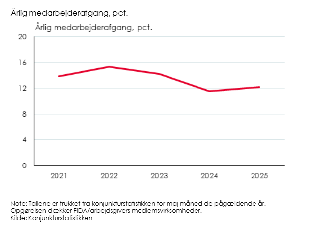 Medarbejderafgangen har varieret fra år til år, men siden 2022 ses en faldende tendens. Det kan skyldes, at afgangen er ved at stabilisere sig efter corona-pandemien, som medførte en stigning i medarbejderafgangen. Den faldende tendens ses på tværs af hele arbejdsmarkedet.