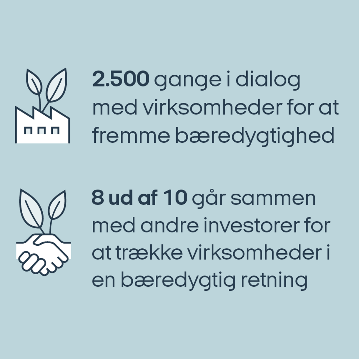 Finanssektoren understøtter omstillingen af realøkonomien ved at investere og skubbe de sektorer og selskaber, som i dag har et stort aftryk på naturen eller er store CO2-udledere, i en mere bæredygtig retning. Det gælder bl.a. elproduktion, olie, cement, stål og transportsektoren – hvis selskaberne vel at mærke er seriøse omkring omstillingen af deres produktion.