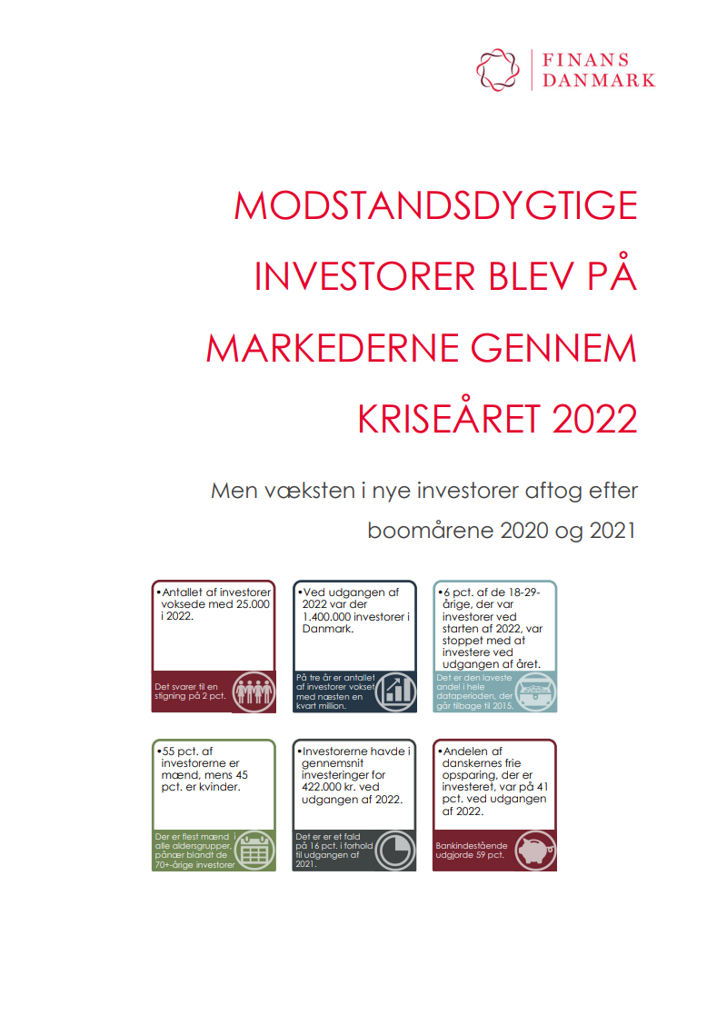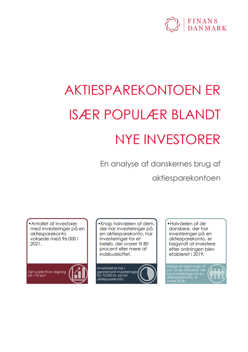 Finans Danmark ønsker at være med til at styrke investorkulturen i Danmark og udgiver løbende undersøgelser af, hvordan danskerne sparer op og investerer. På denne side får du et samlet overblik over alle vores større analyser af danskernes investeringsvaner.