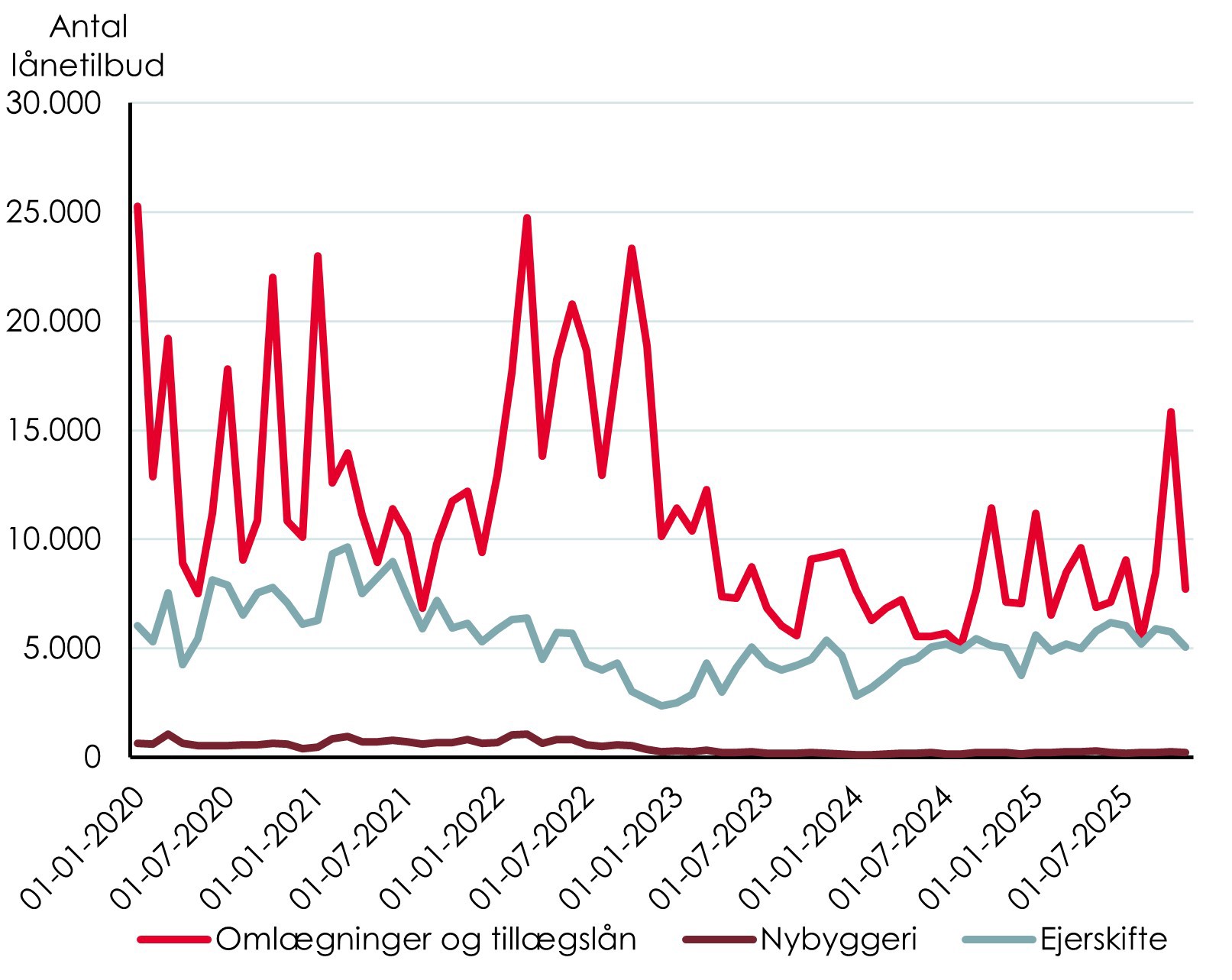 - Ud af de 14.944 lånetilbud i november var 7.706 knyttet til omlægnings- og tillægslån til boligejere. Det er en stigning på godt 8 pct. i forhold til samme måned sidste år.