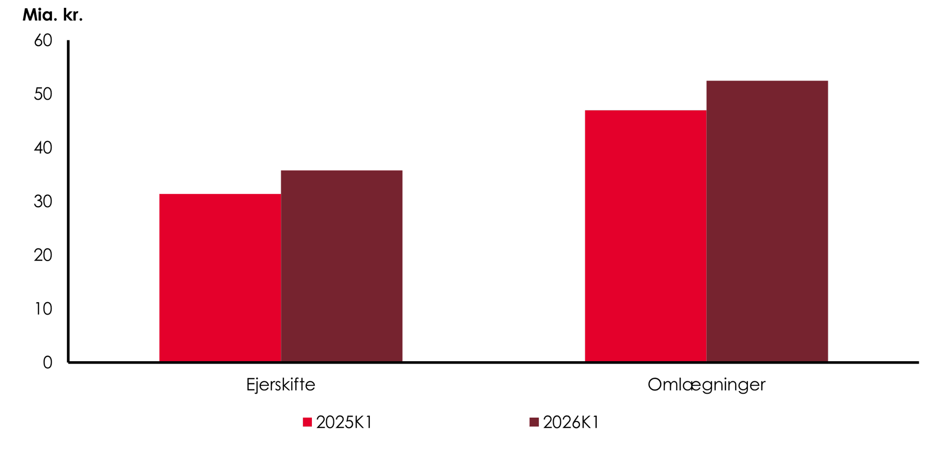 I samme periode steg udlånet til omlægninger og tillægslån med godt 11,5 pct., og udgjorde knap 52,5 mia. kr. Det svarer til lidt over 56 pct. af det samlede bruttoudlån.