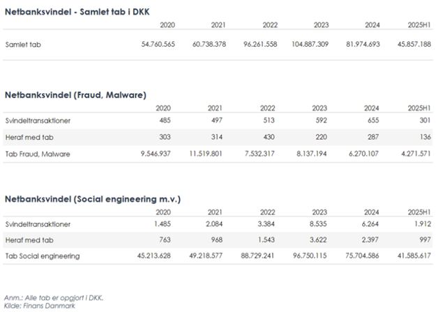 Det samlede antal af sager er ganske vist faldet til 2.213 sager i første halvår mod 3.361 i sidste halvår 2024. Men det samlede svindlede beløb er vokset med knap en tredjedel. I alt forsøgte svindlerne at stjæle 78,5 mio. kr. i halvåret og slap afsted med knap 45,9 mio. kr., da halvdelen af svindelforsøgene blev bremset og afværget af bankerne, eller kunden selv sagde stop. Det betyder, at det gennemsnitlige beløb, som de kriminelle kunne stikke i lommen efter et vellykket svindelnummer, nu ligger over 40.000 kr. Vi skal tilbage til 2022 for at se et højere beløb. Og det bekymrer underdirektør i Finans Danmark Michael Busk-Jepsen, der har ansvar for digital innovation, kritisk infrastruktur og beredskab.